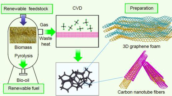 廢棄生物質(zhì)熱解制備高附加值碳納米材料路線示意圖